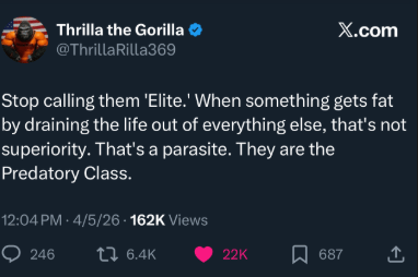 That’s what came to mind when I saw a post that said we should stop calling certain people “elite” and call them the “predatory class” instead.