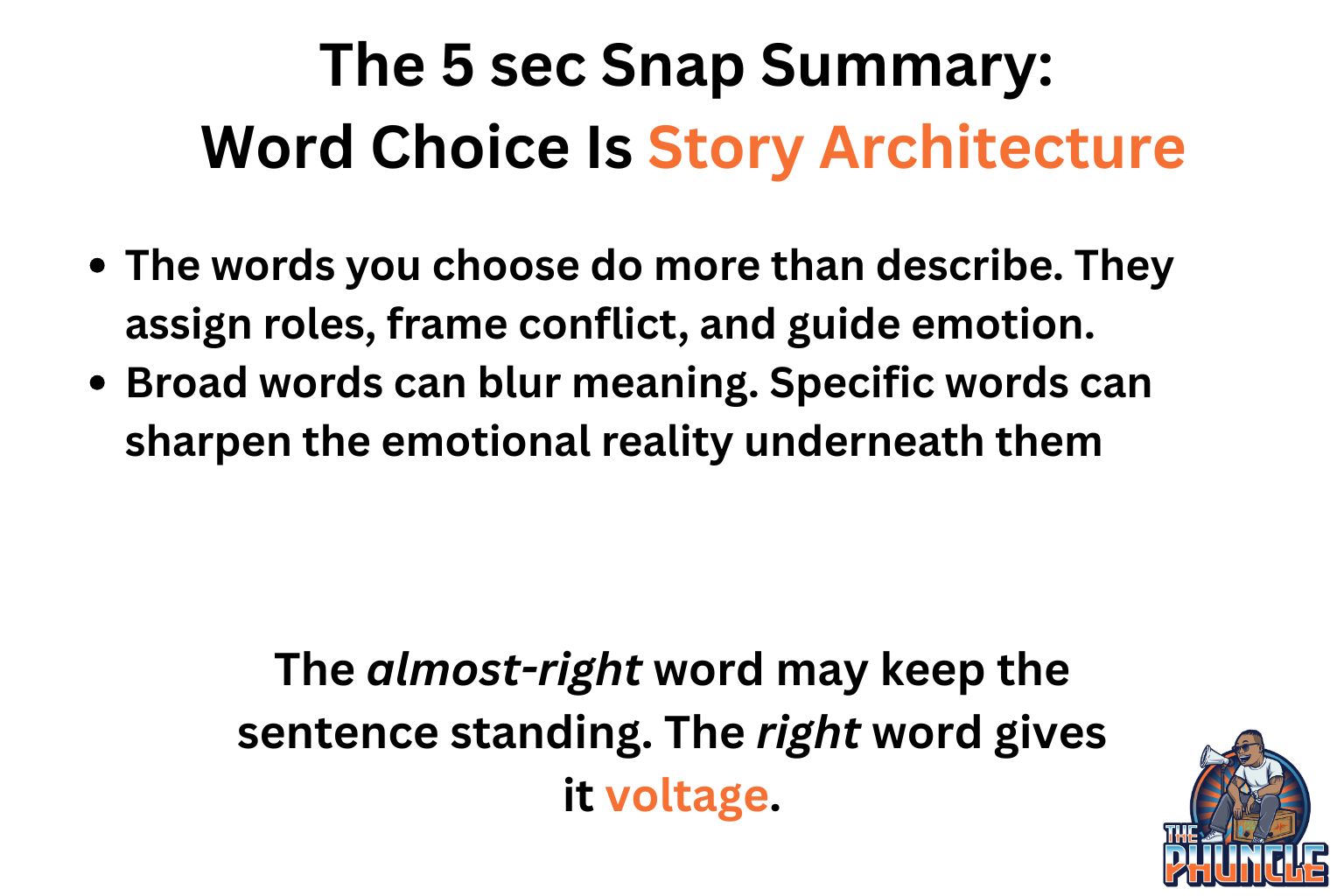 Word choice is not garnish. It’s the salt, fat, acid, and heat of the story.