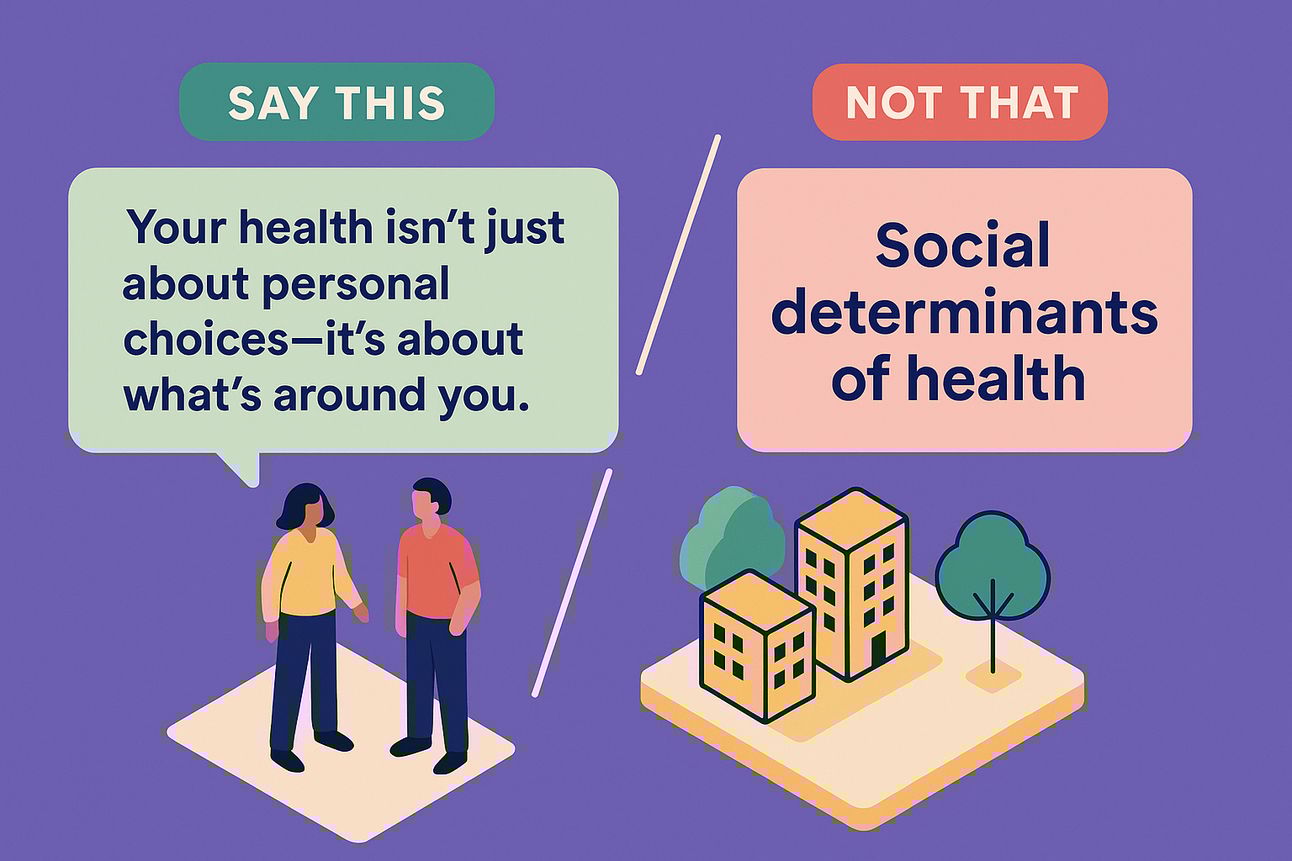 📝 Message Makeover: Social determinants of health” is useful for us. It gives Public Health a shared language. But to a nonexpert? Can get clunky.